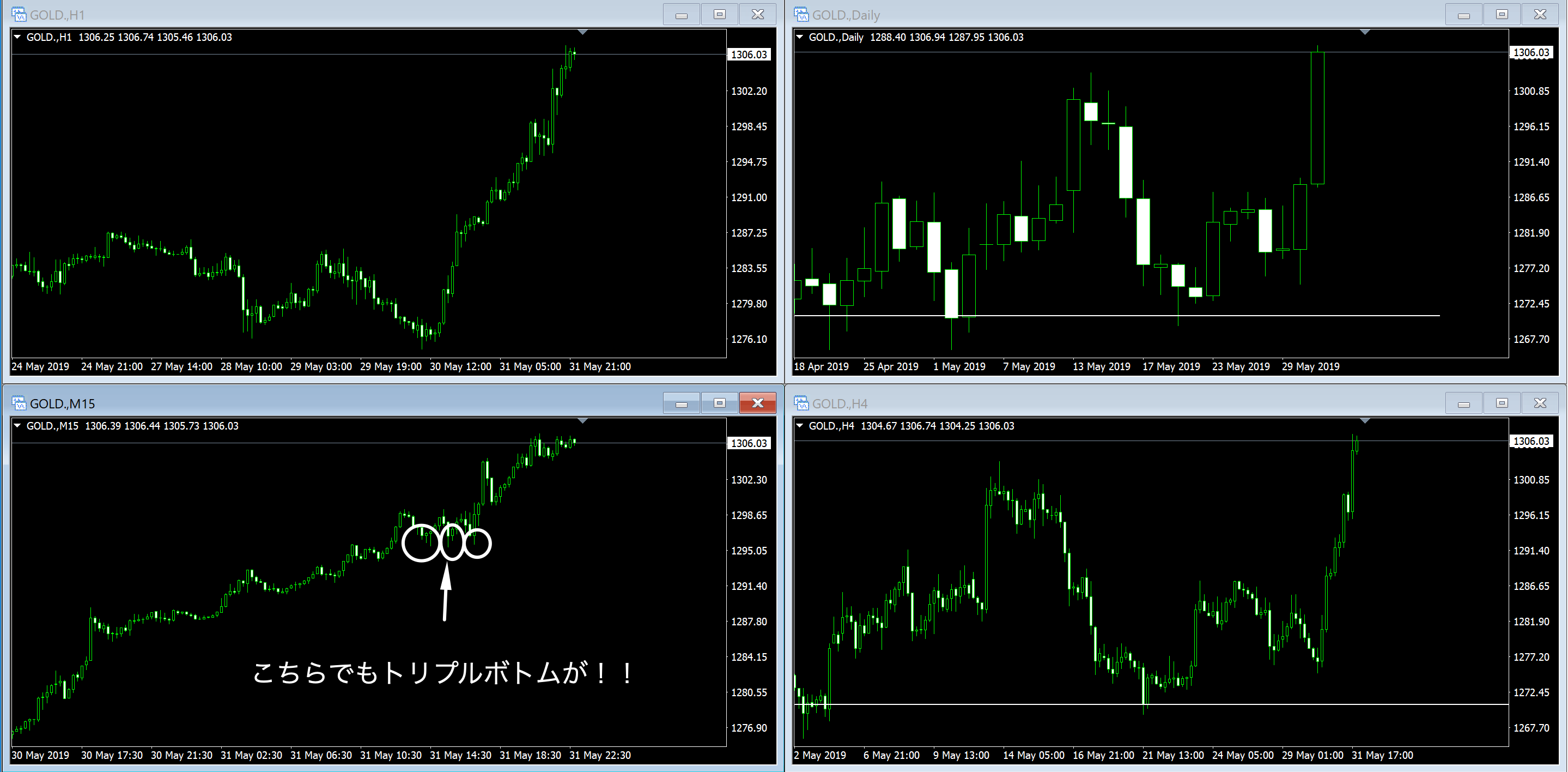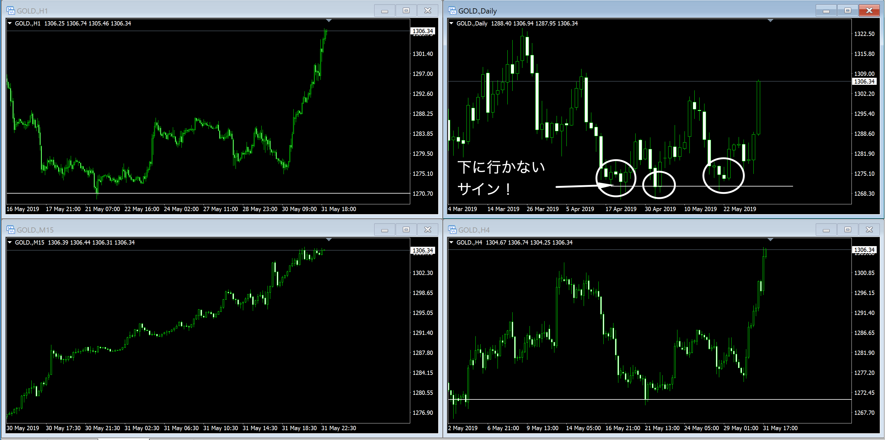つまり、1時間足以下で下に行かないサインが出ていれば