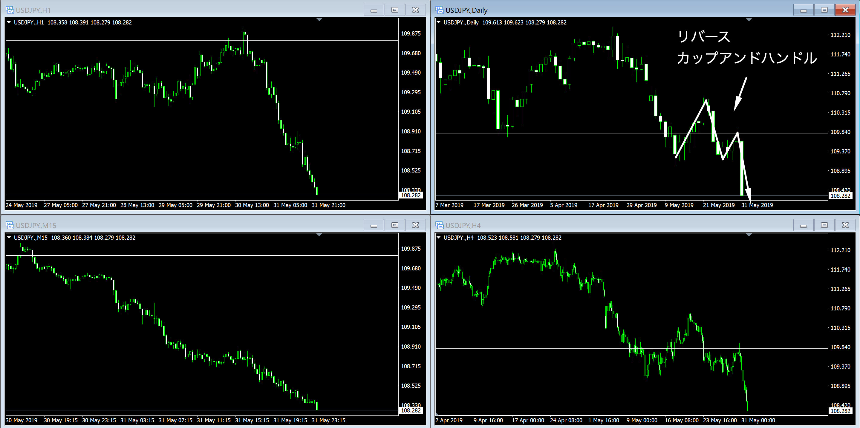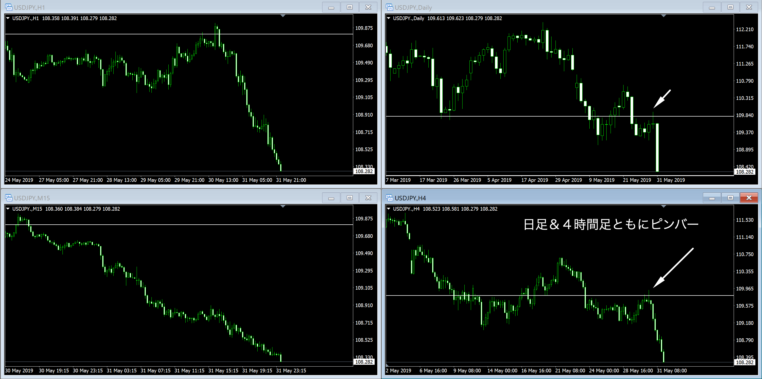 4時間足も下に行くサインを出してしまえば下にいってしまいます。