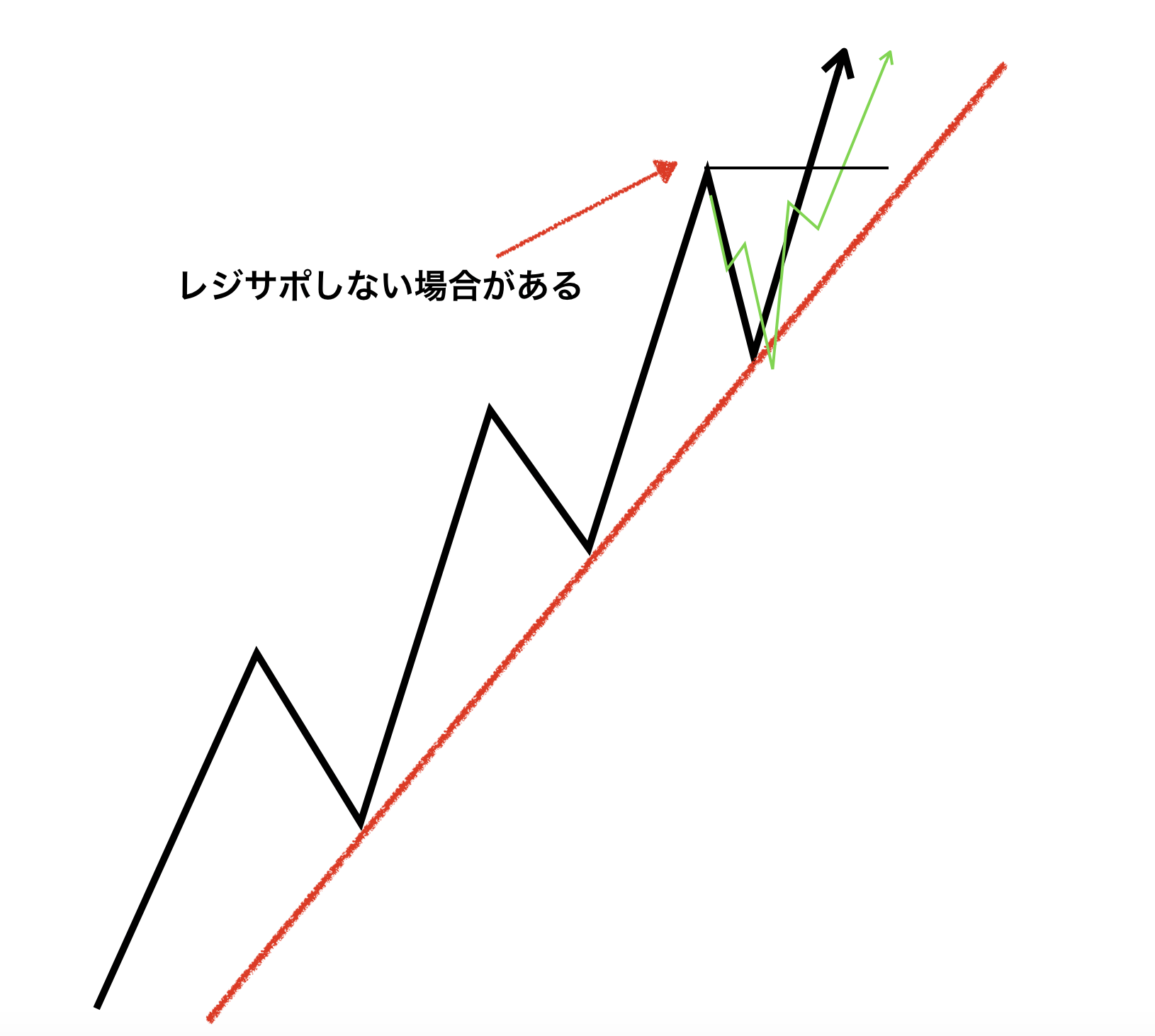上位足の波が出ている状況だと下位足が合流するときは レジサポしていかない場合がある。