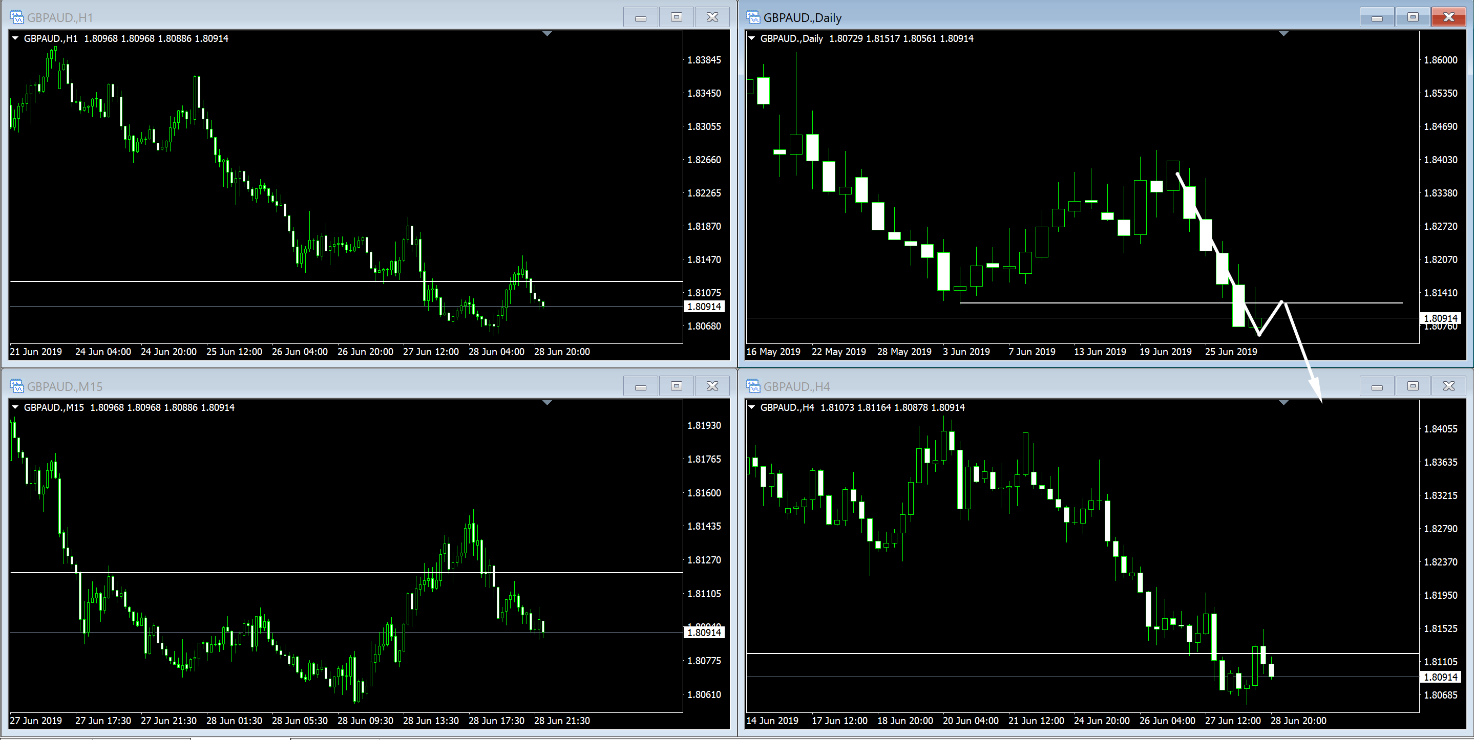 下位足がレンジになっているため、そこのブレイクをとっていくこと