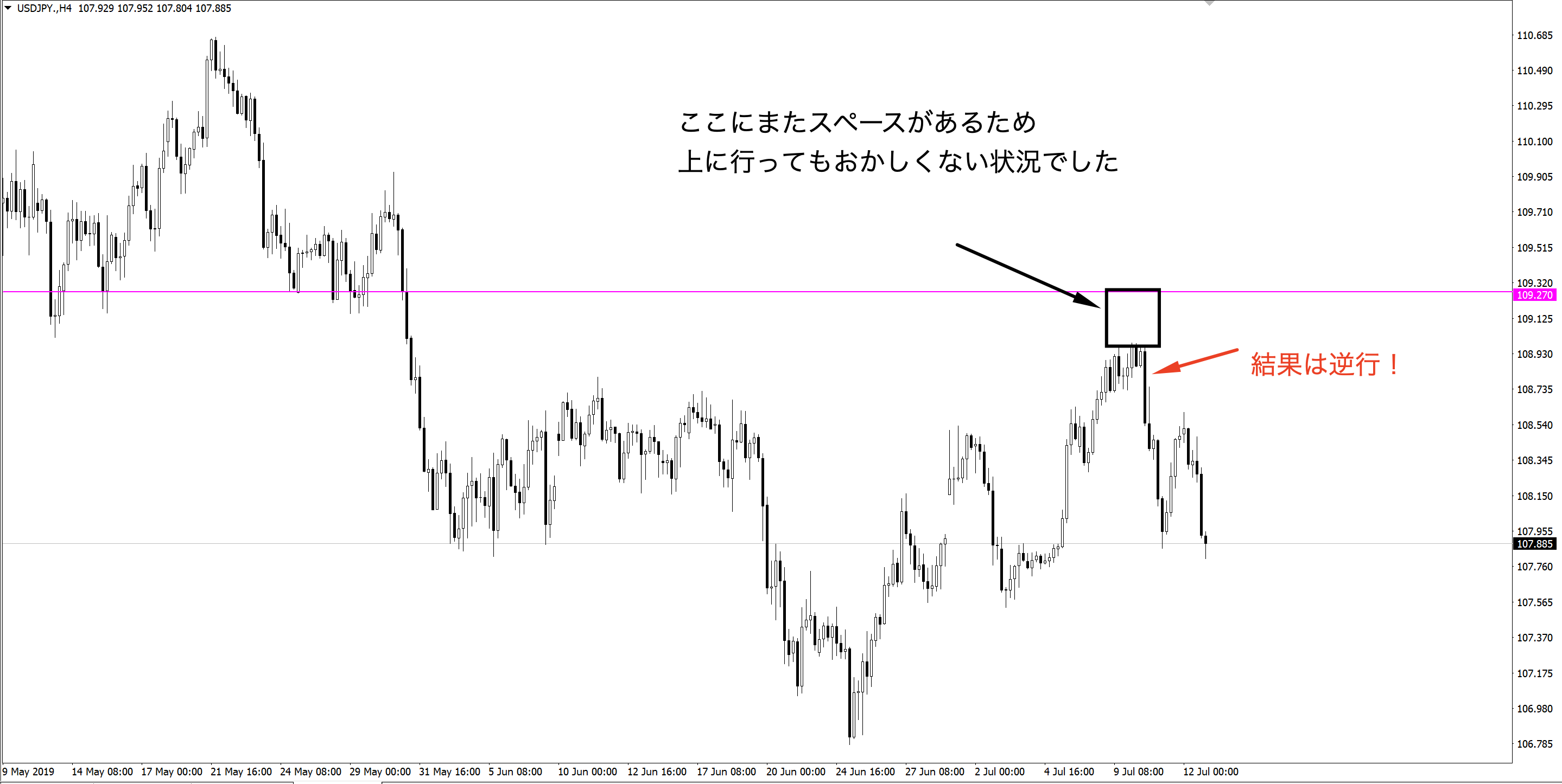 日足が行けそうでも週足が戻される場所ならやらない