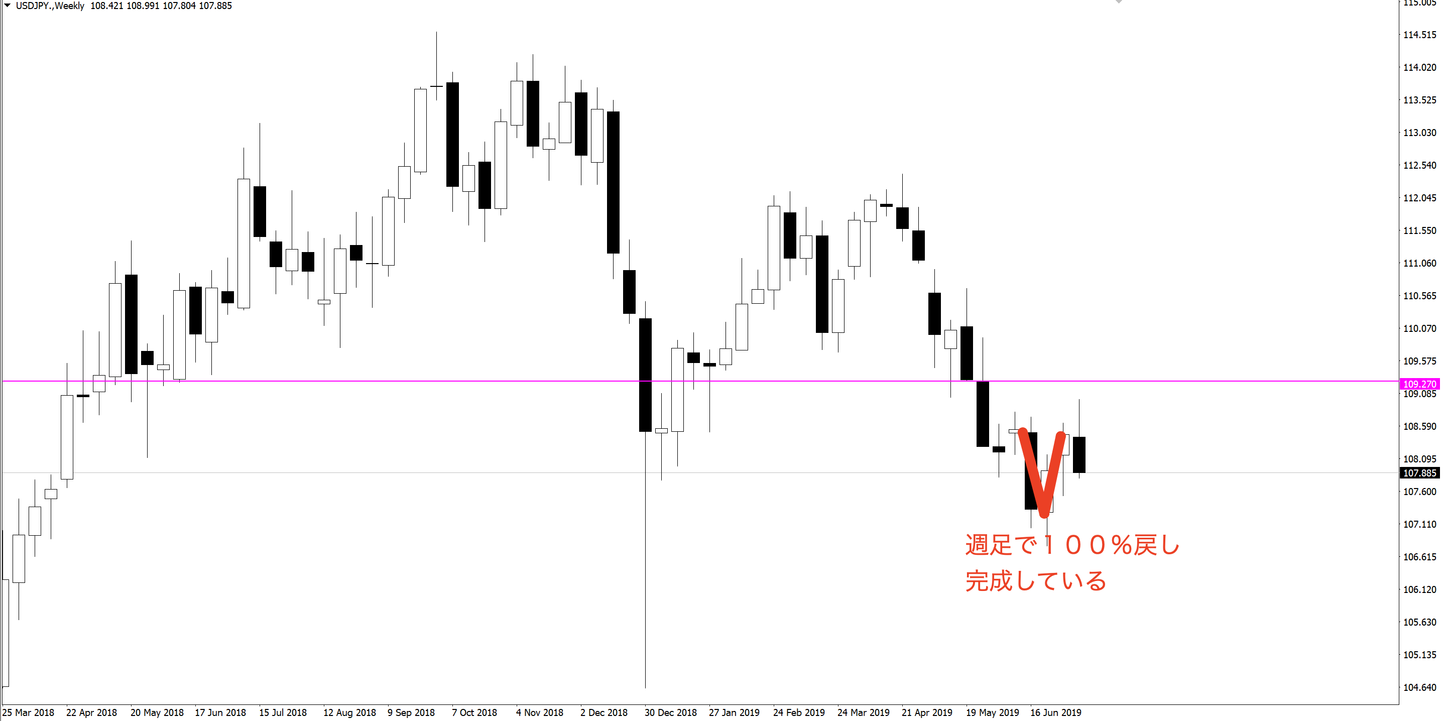 今日は週足のV字戻しの話をします。