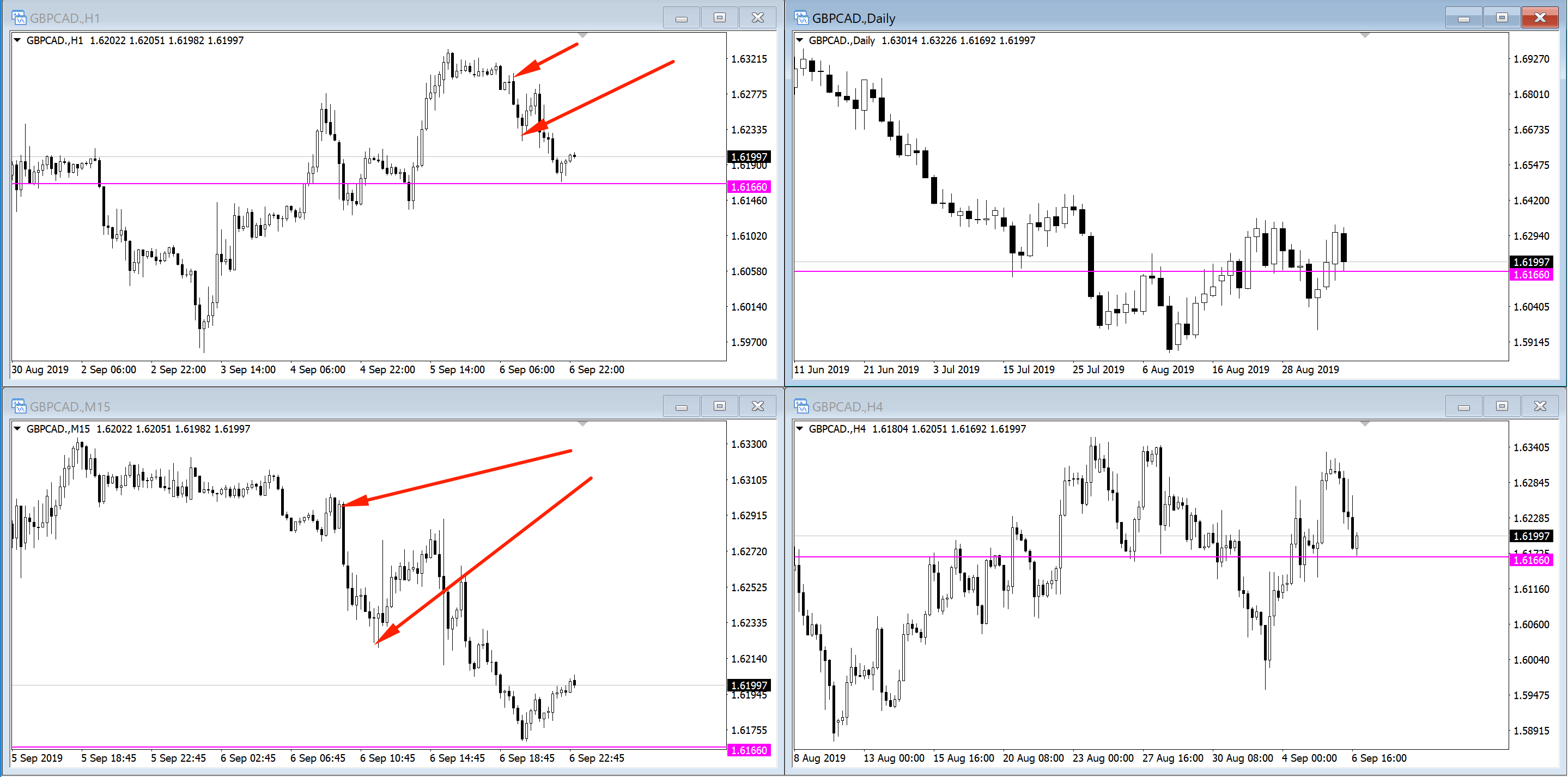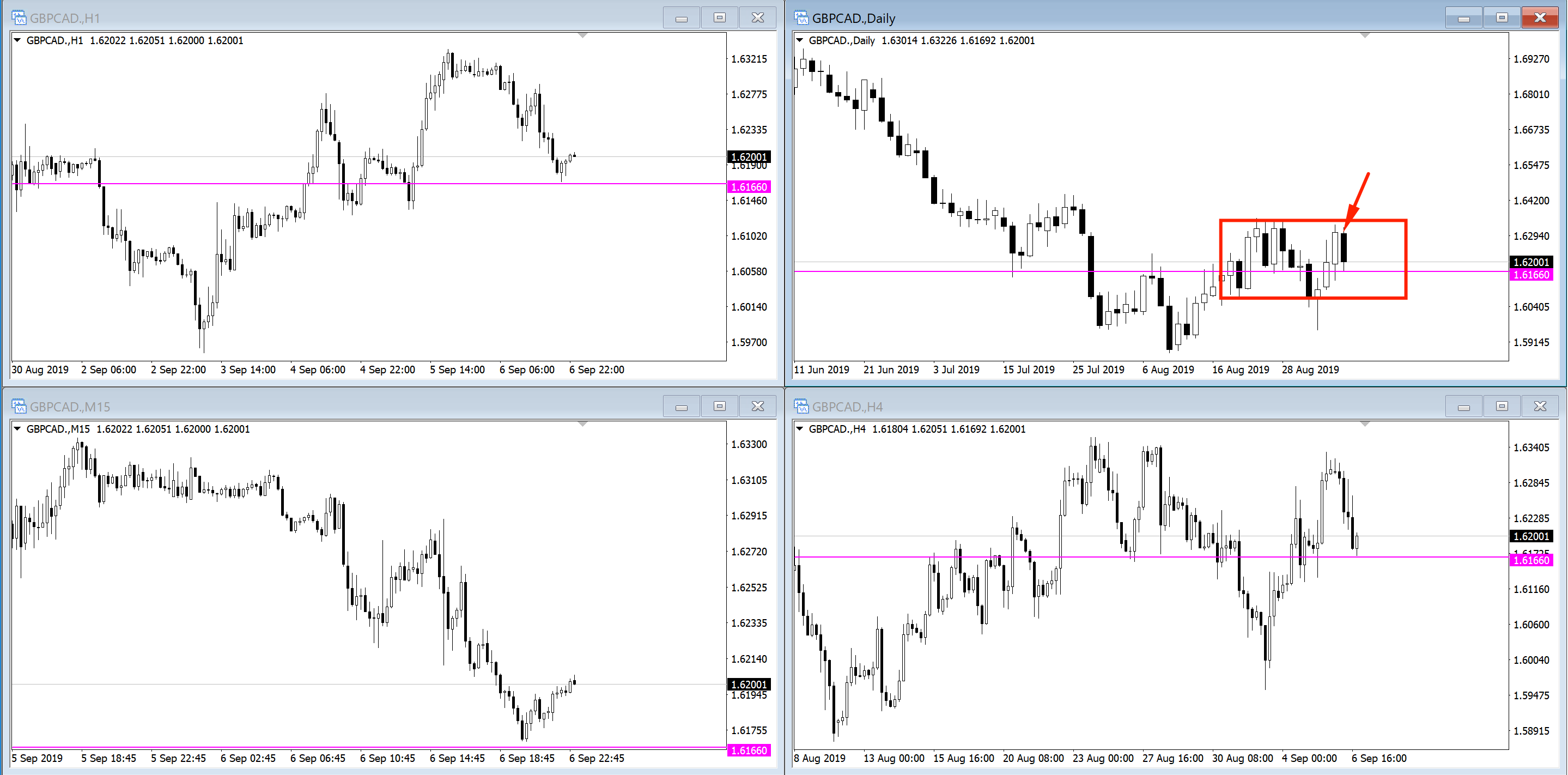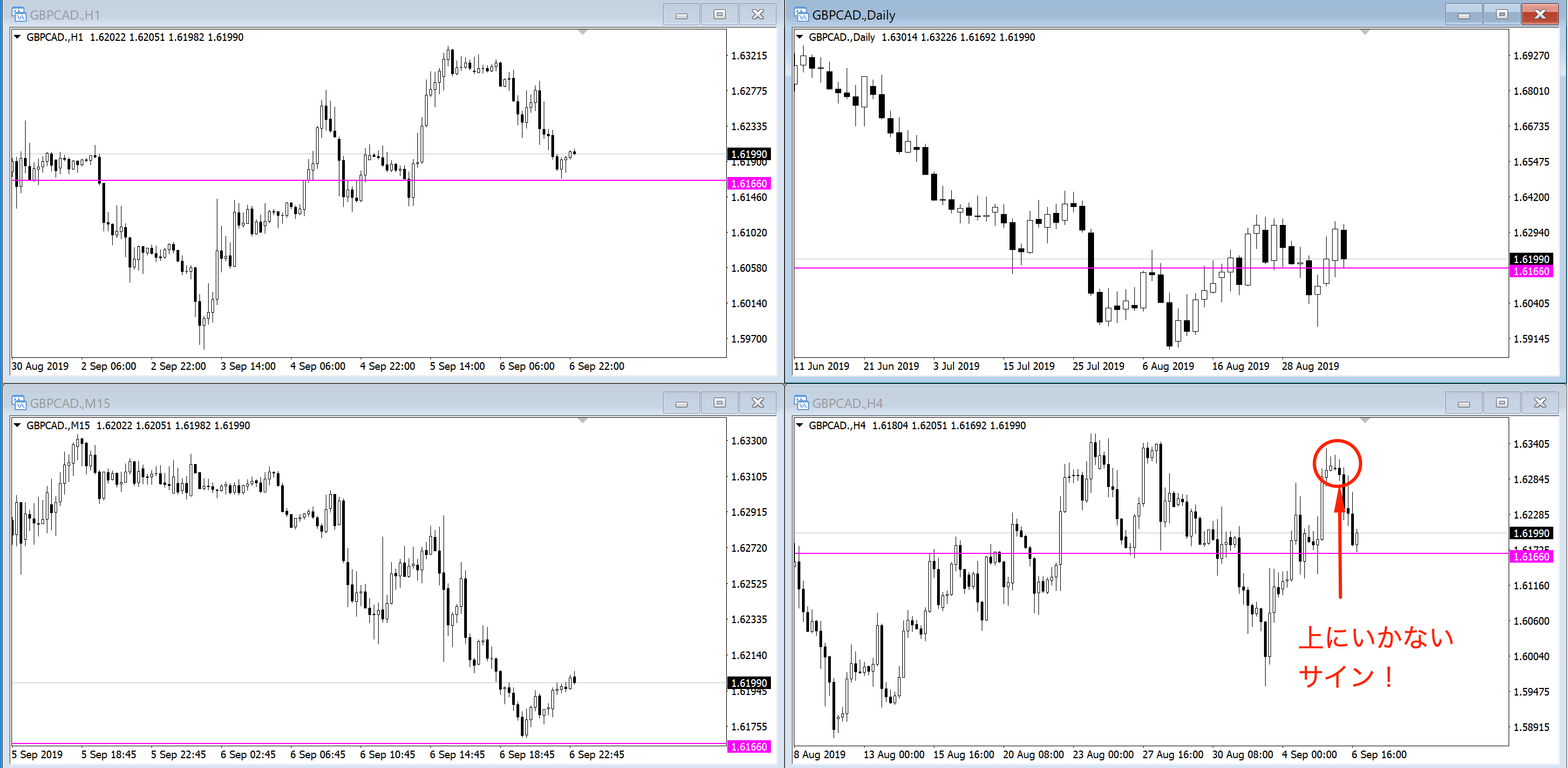 そして、下位足が整ったこの辺りからショートをしかけていくと