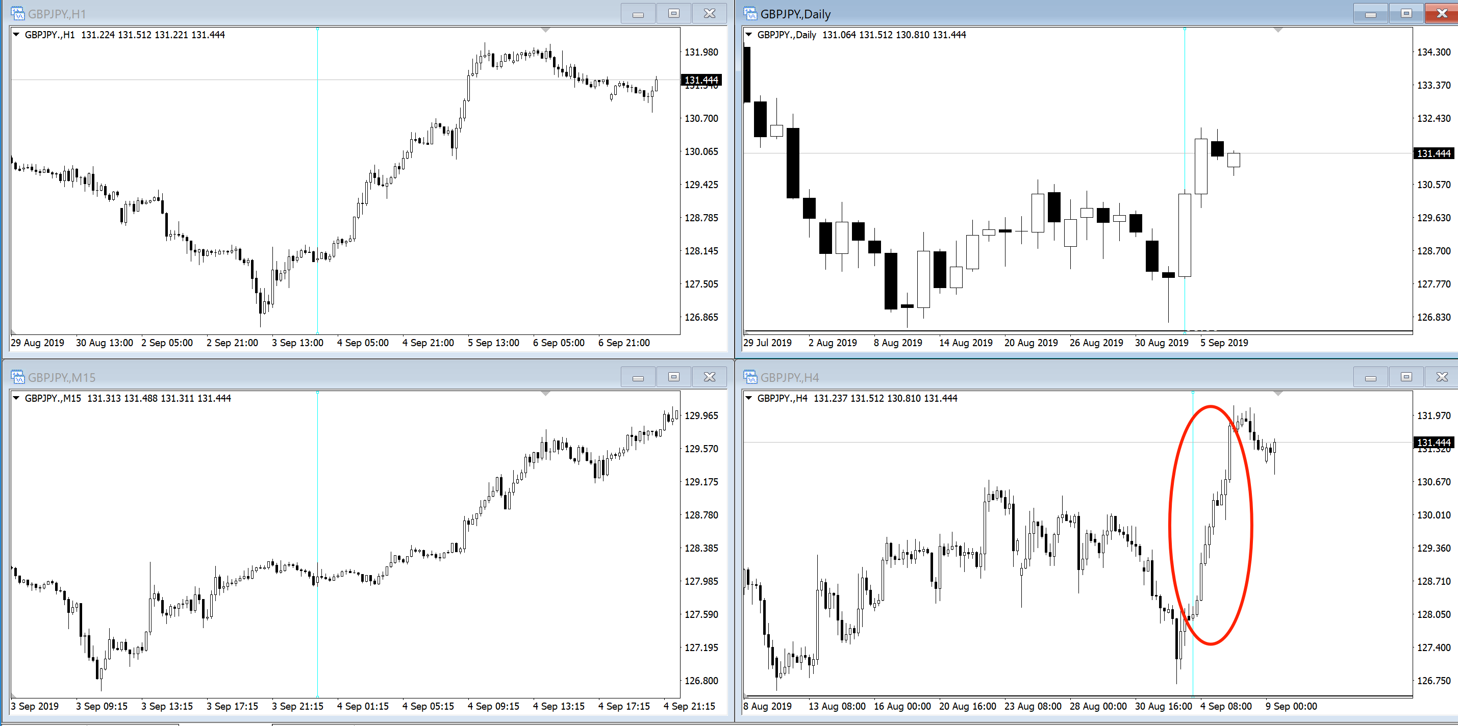 上位足の流れの向き(ローソク足レベルで)を把握しておくのが