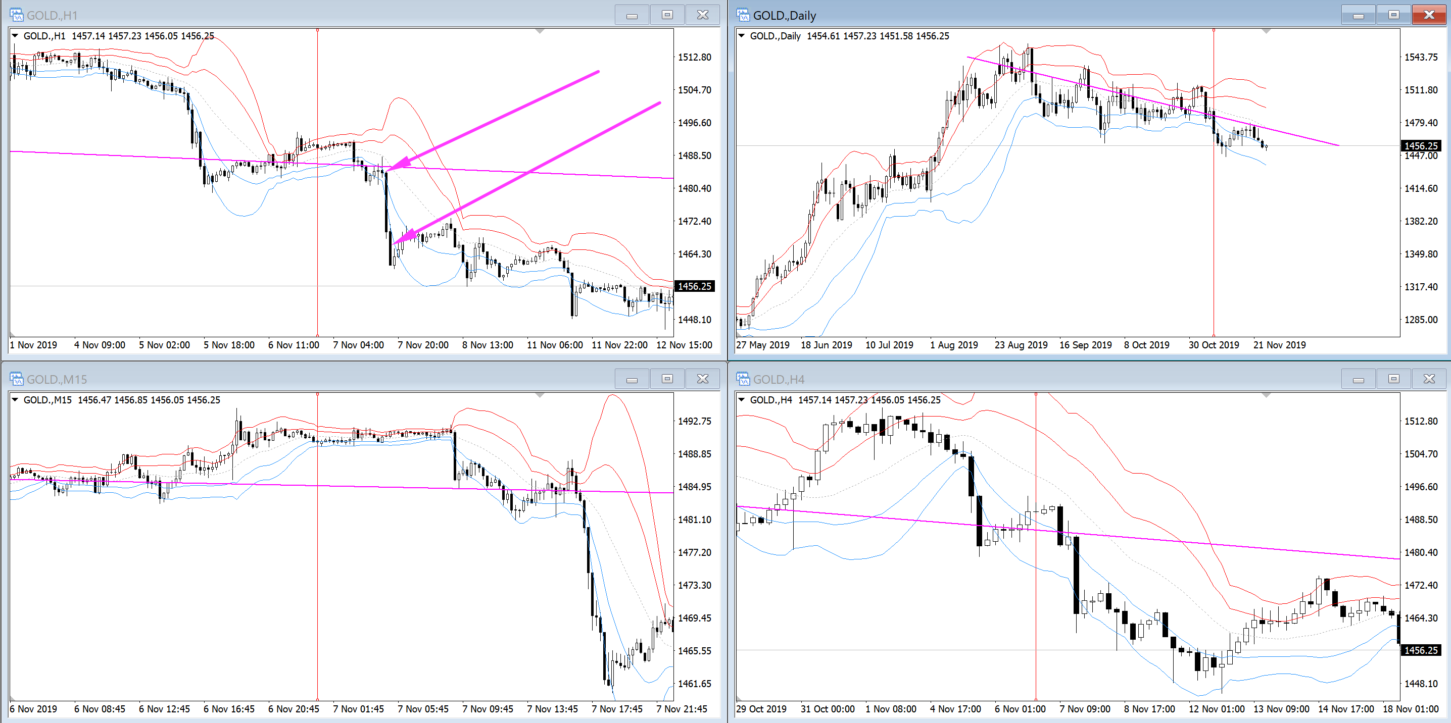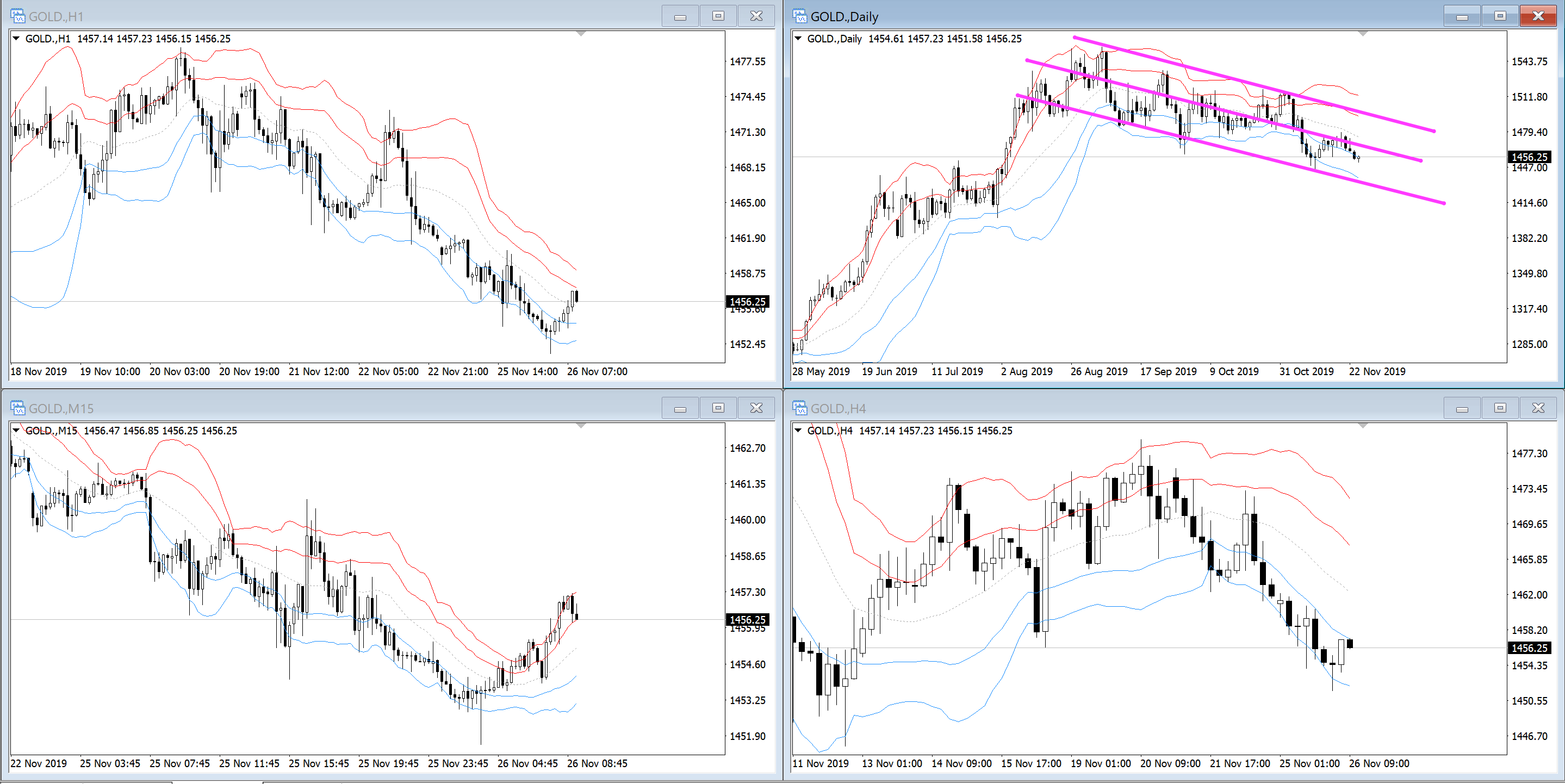 GOLDも日足のチャネルになっています。