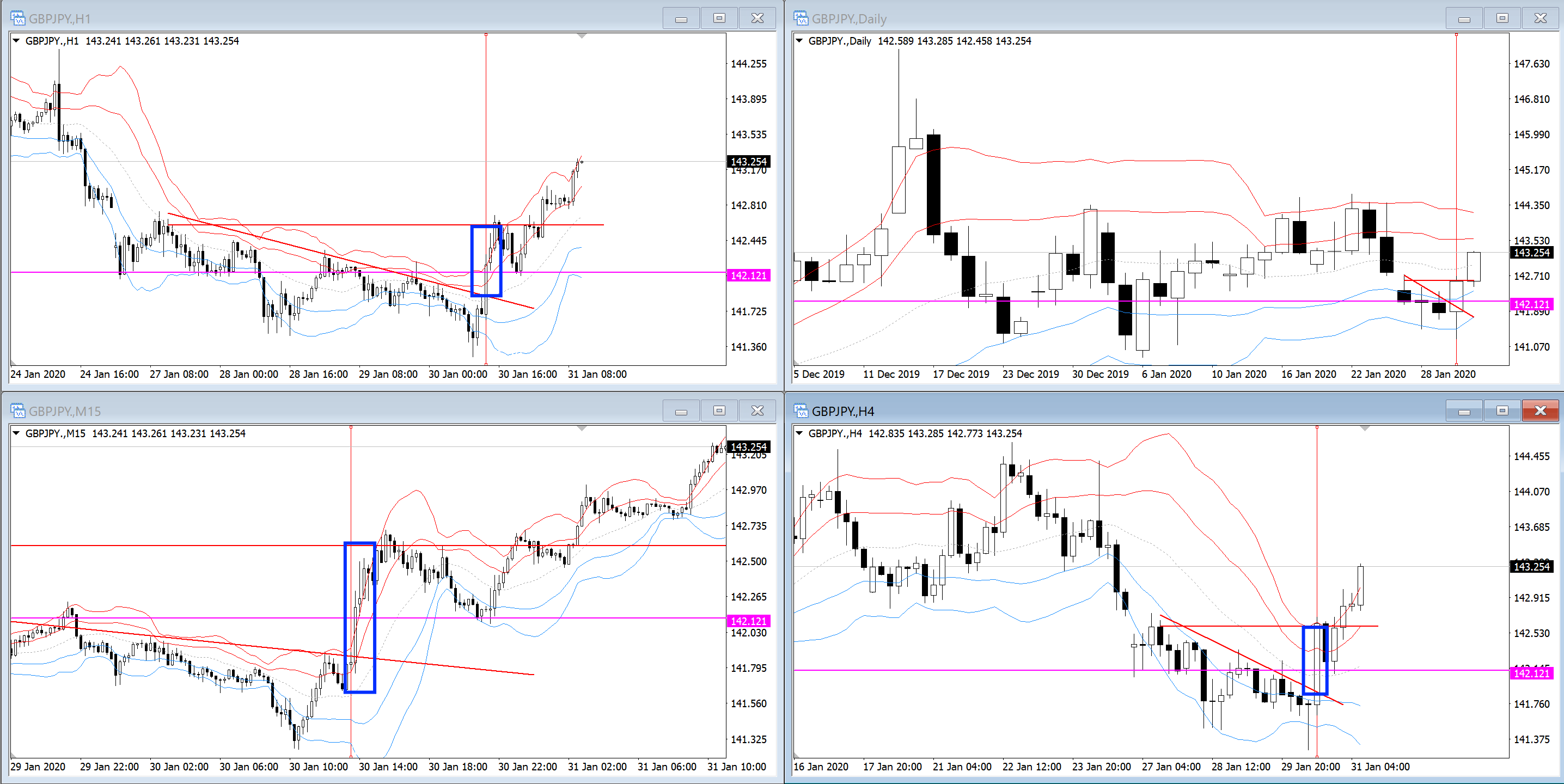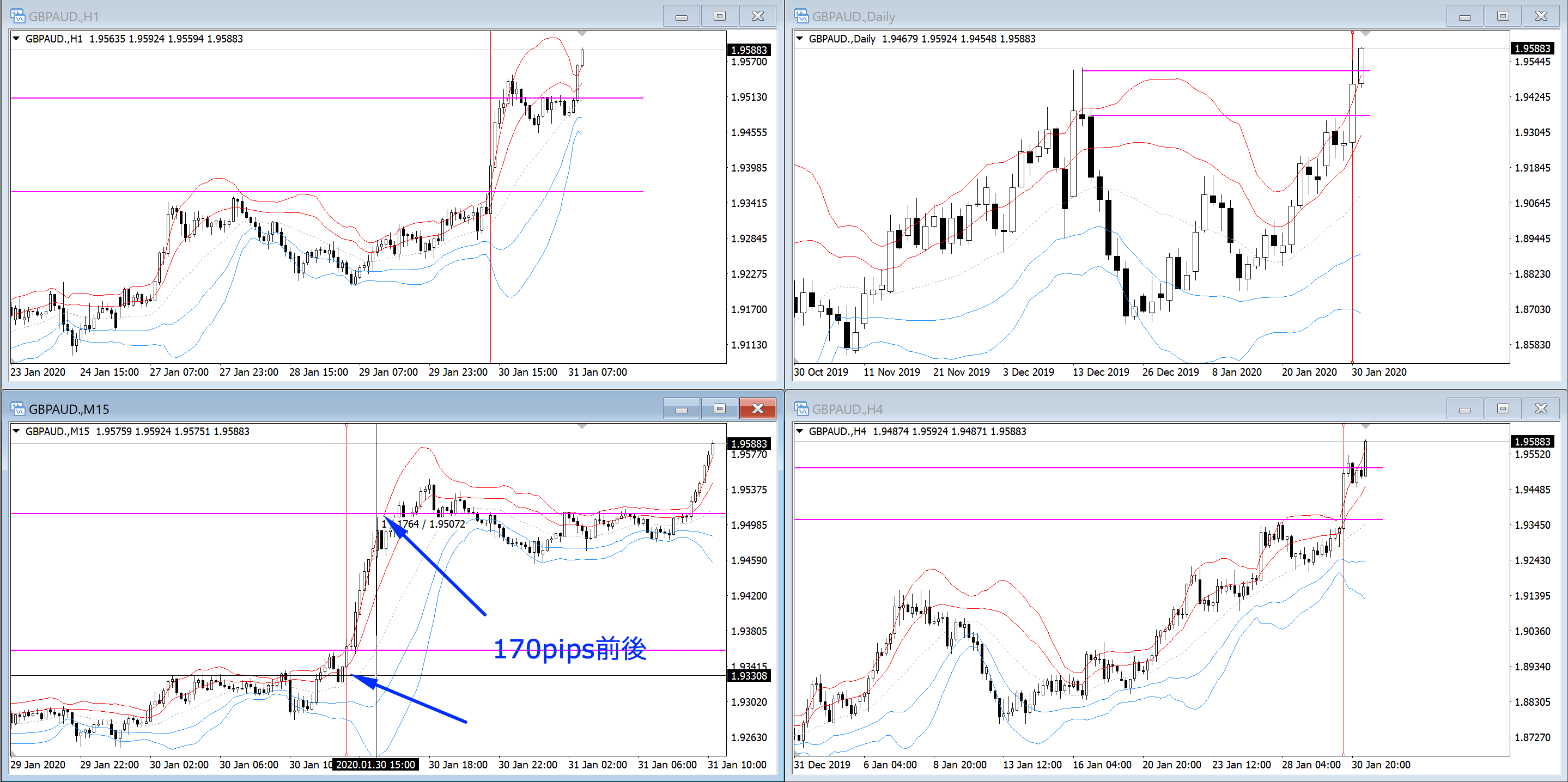 この時に4時間足はレンジになっているわけですが