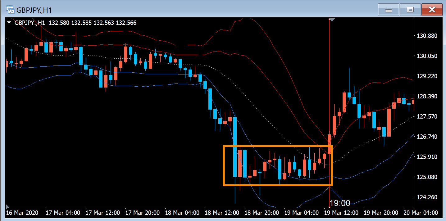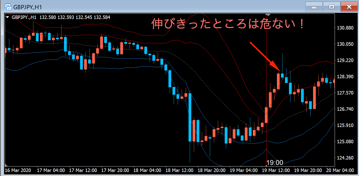 2020年3月19日 GBP/JPY 1時間足