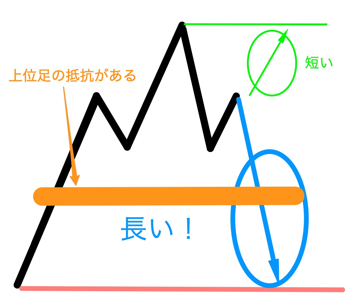 その時間足ではわからないことも上位足ではわかることがあります。