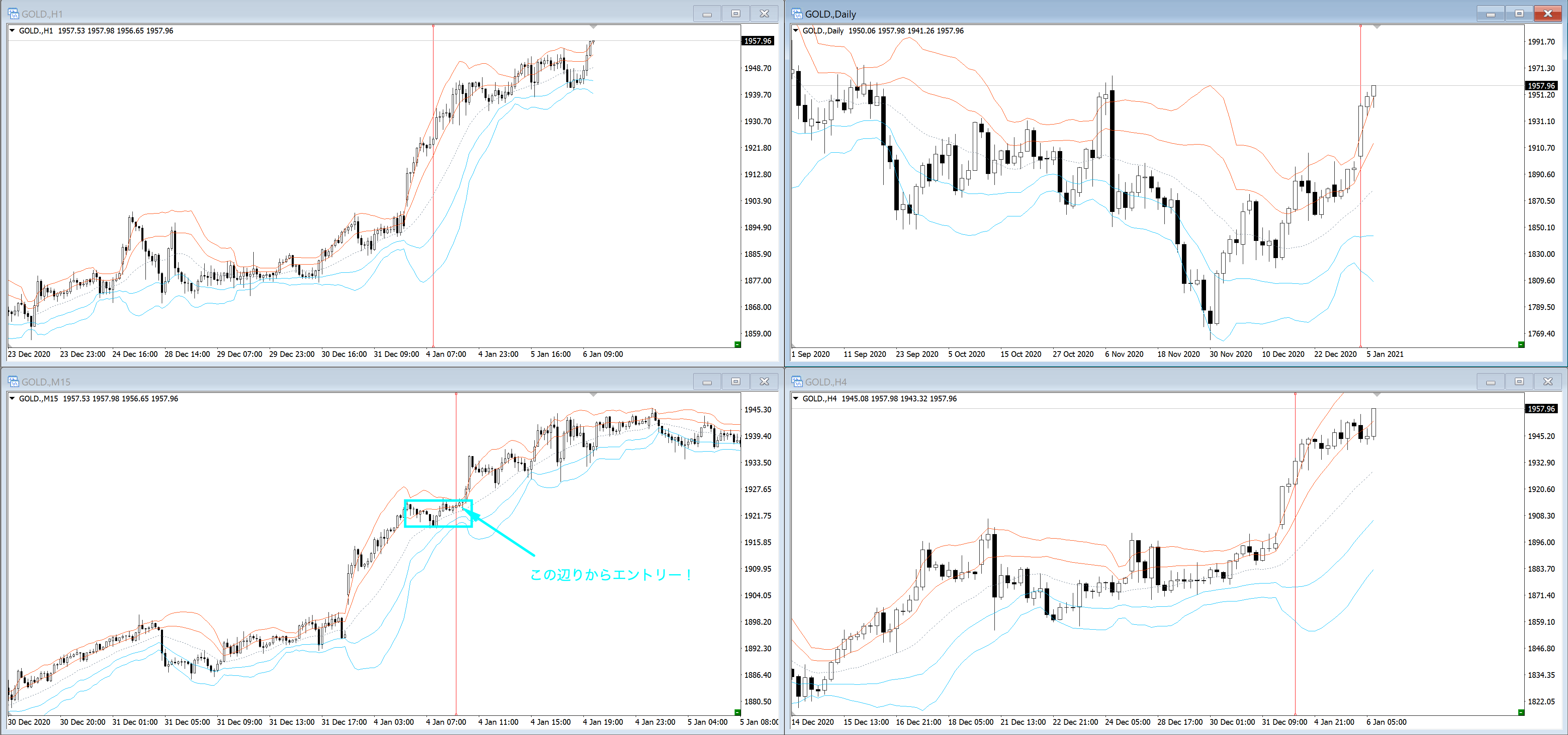だったら、1時間足がトレンド方向に流れるとそのままスムーズに流れがでるポイントだと思ってください^^