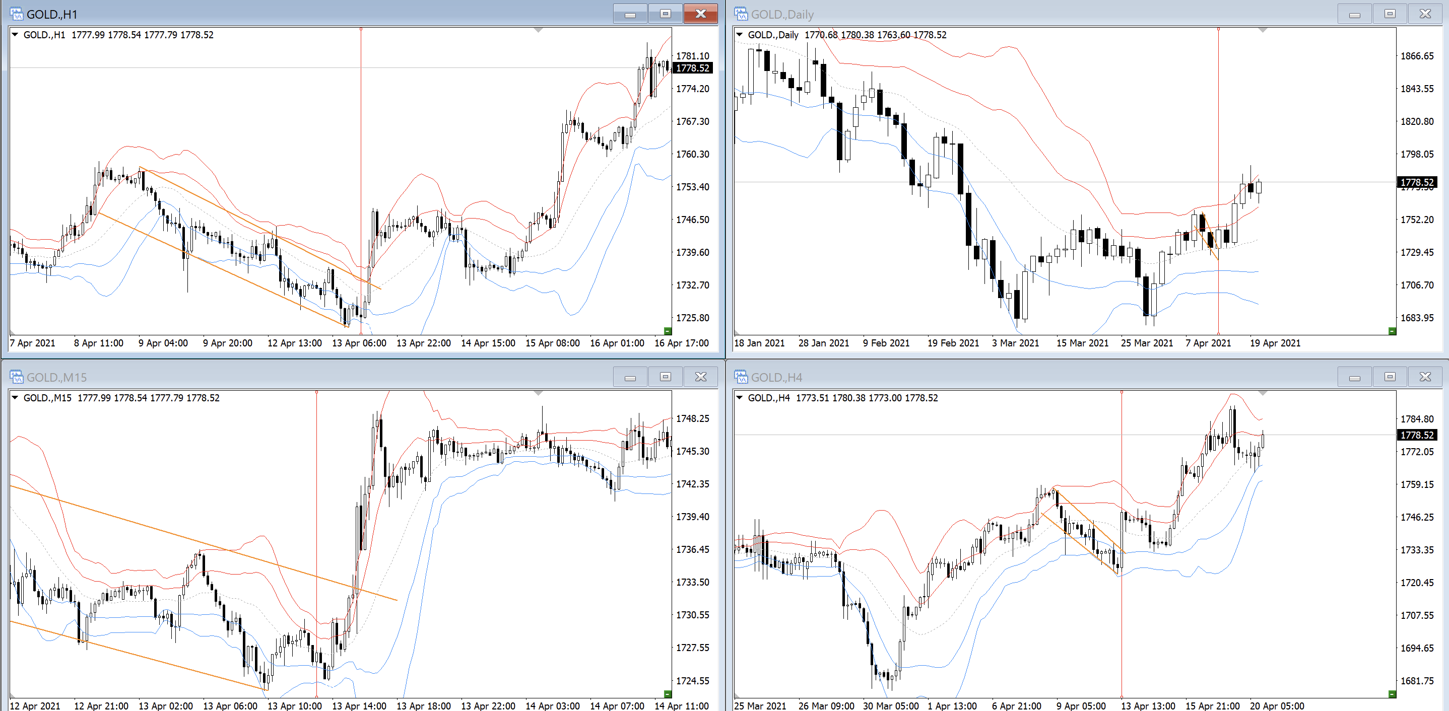 日足や週足のチャネルで、幅があるところは別ですが、4時間以下のチャネルの中は幅が少ないです。