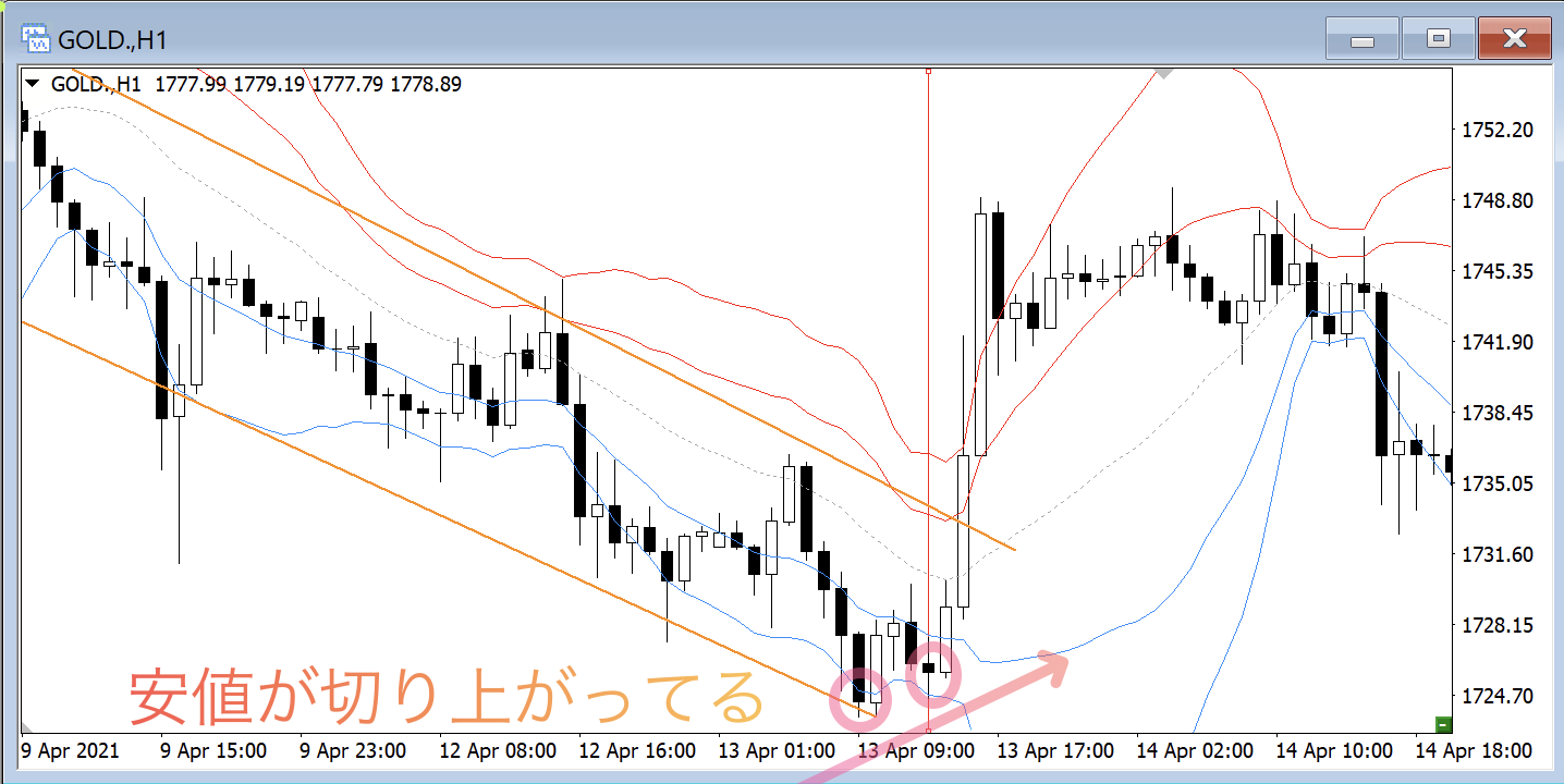 この時にチャネルの下限を更新しなかったのをしっかり1時間で確認することが大事です。