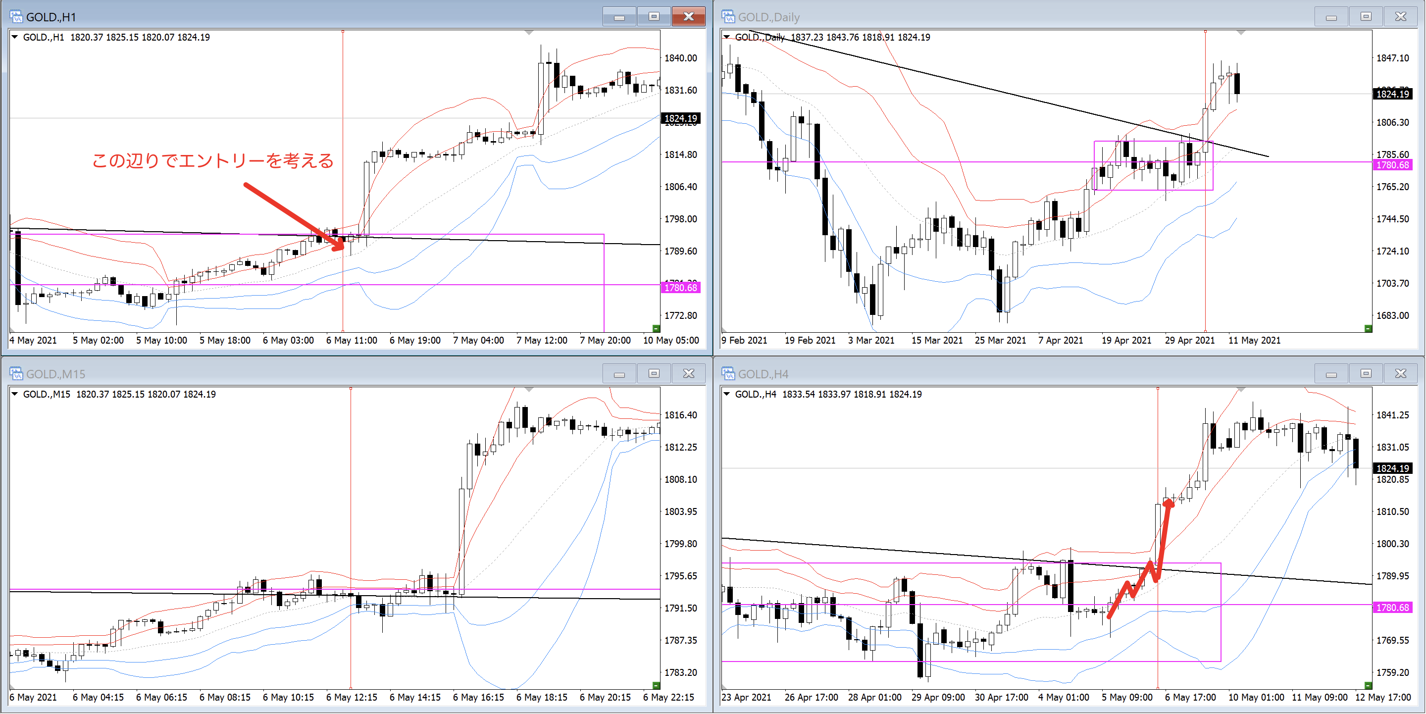日足以下で具体的にトレードポイントを探っています。