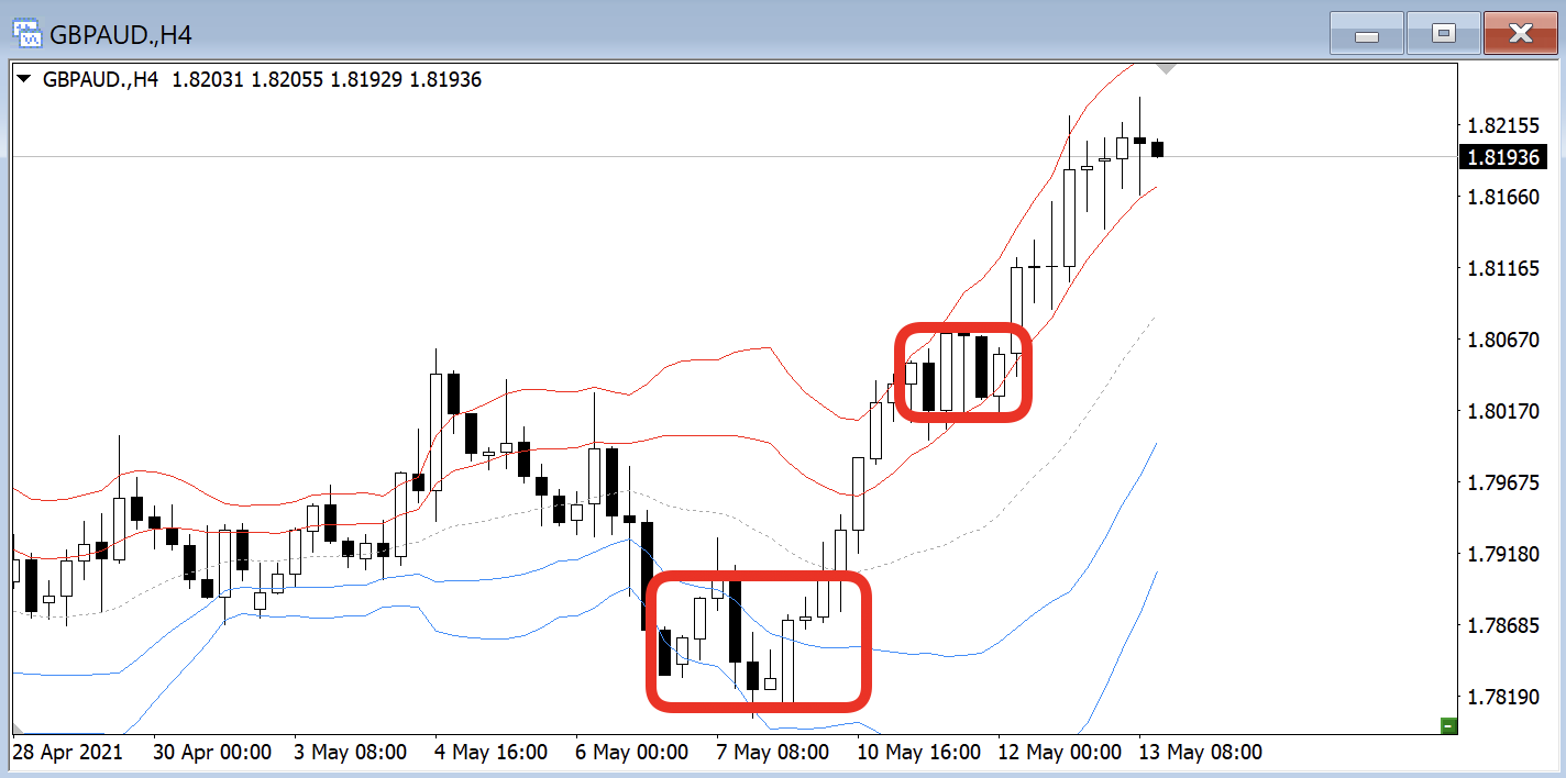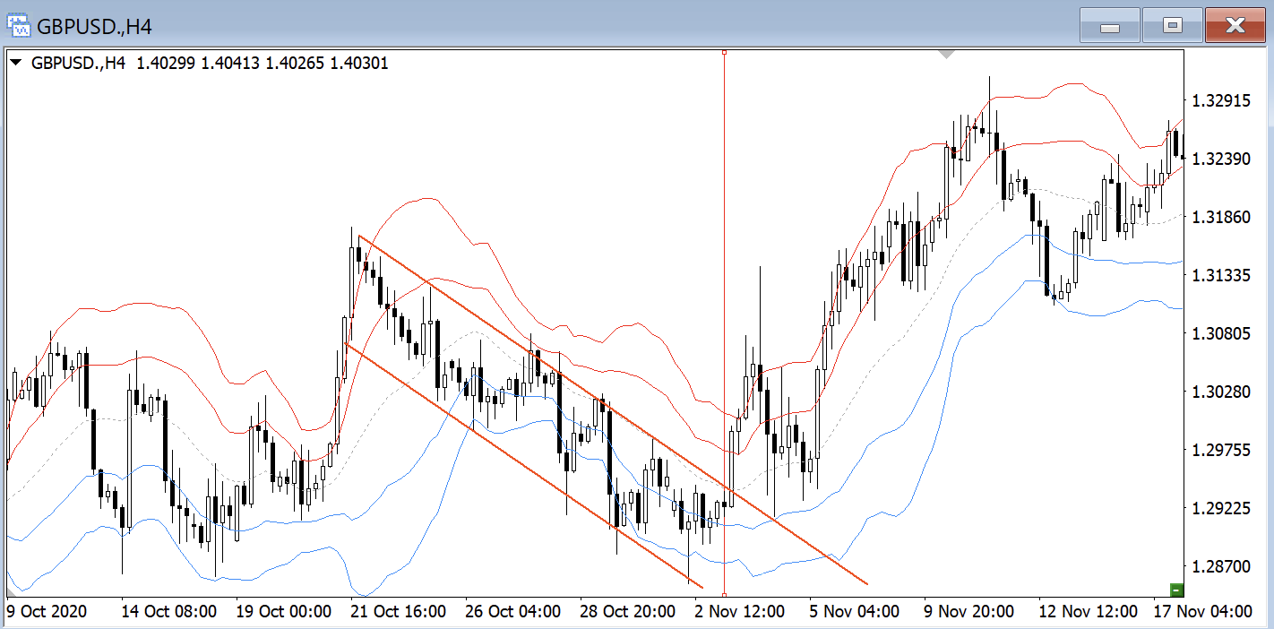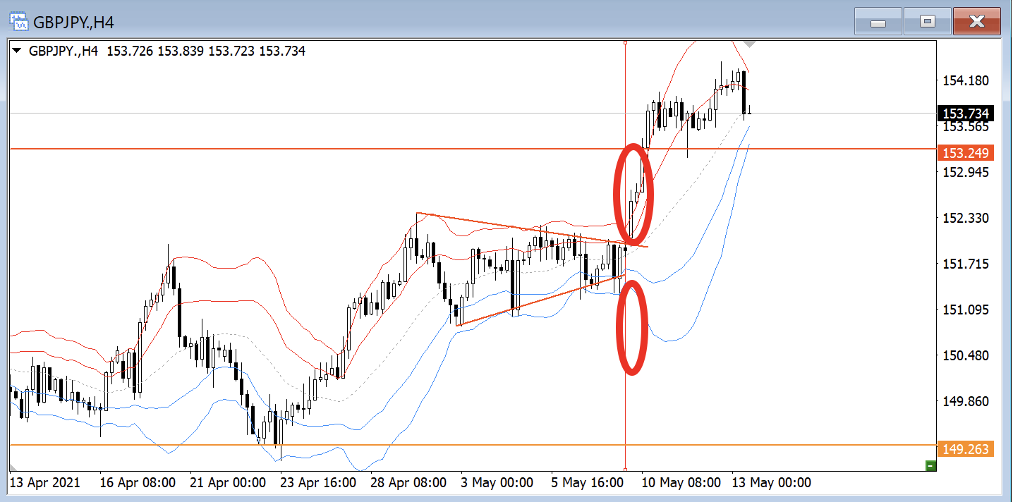 このように4時間レベルでチャネルを作っているとそこを抜けると大きく伸びてくれています