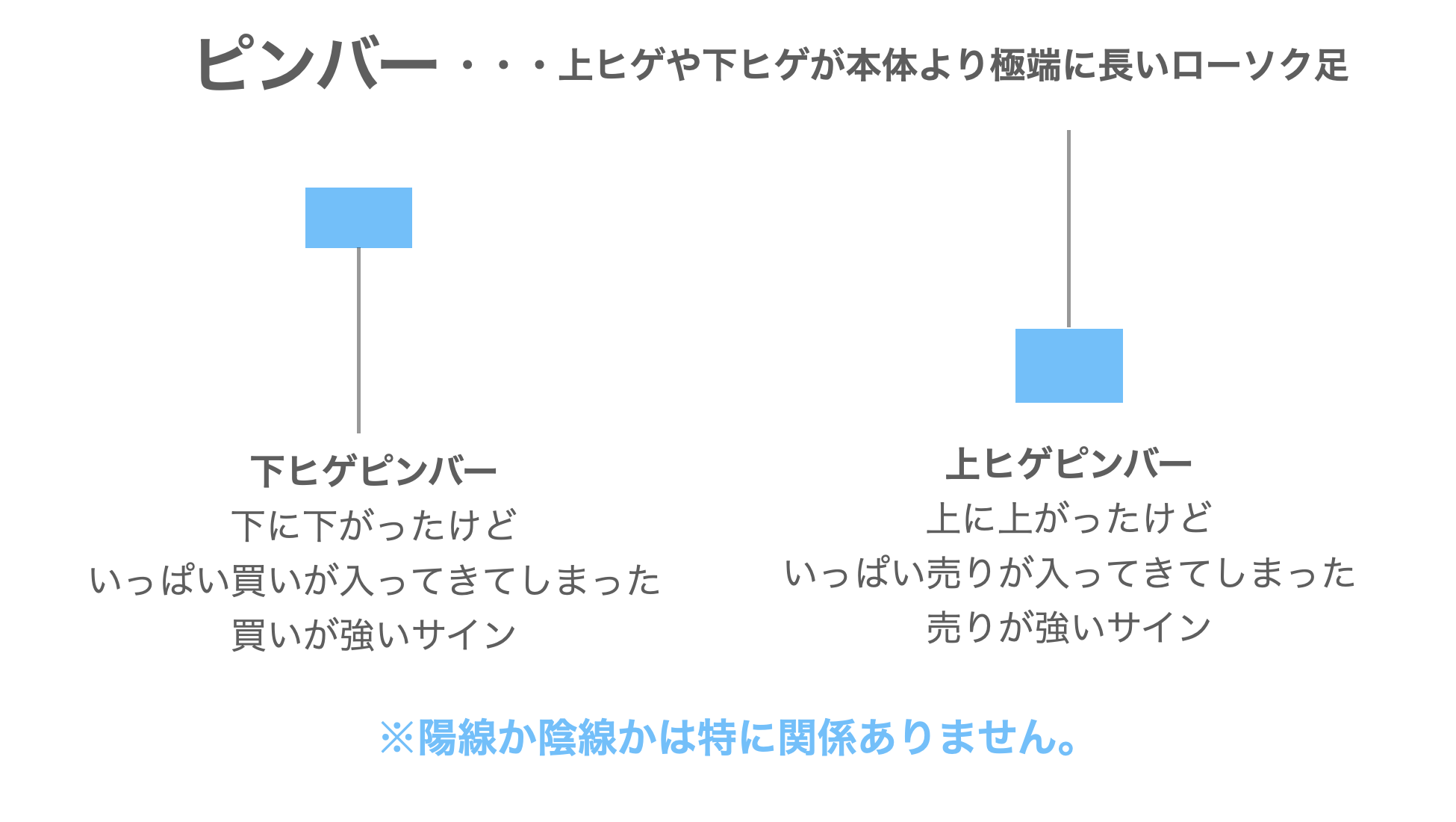 一旦下に下がってから上がってきて、下に大きなヒゲがついてるのを下ヒゲのピンバー