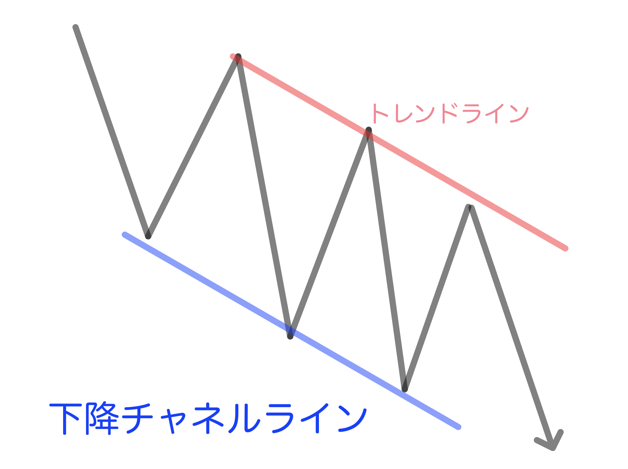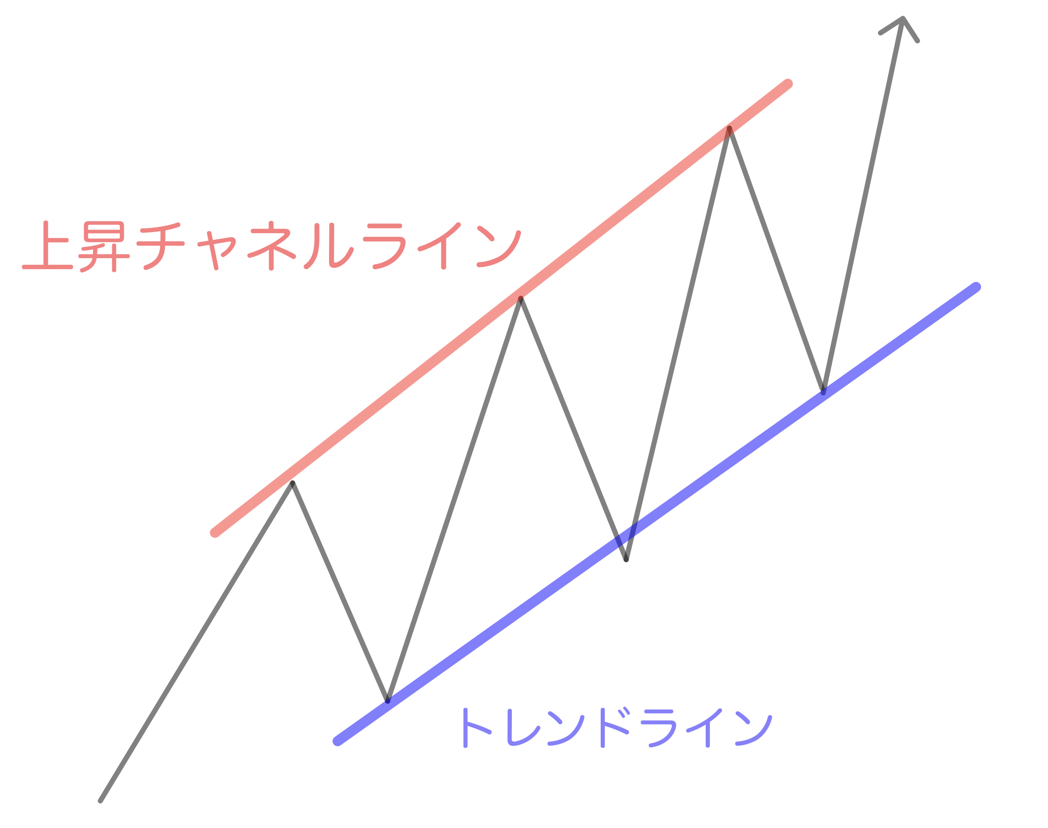 チャネルラインとトレンドラインに挟まれている中をチャネル波と呼んでいます。